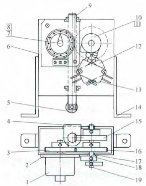 6.反饋組件固定架7.行程變換齒輪8.反饋主動(dòng)齒輪9.軸承