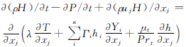(4)能量方程。能量方程描述了流動(dòng)過(guò)程中流體的能量守恒性質(zhì),考慮組分影響后的方程為: