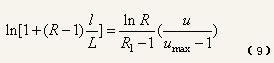 將式(3)右式代入,積分后代入邊界條件(u=umin;I=0,u=umax,I=L),得:
