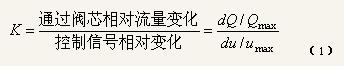 K1表示閥行程與到閥控制信號之間的關系,K2表示通過調節(jié)閥的物料流量與閥行程之間的關系,即調節(jié)閥的結構特性(又稱固有流量特性),一旦閥已選定它就不能再改變了。調節(jié)閥的結構特性,即
