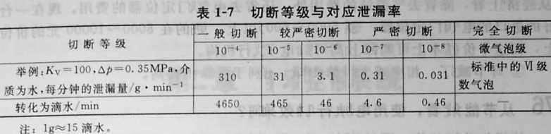 上述標準分還不夠細膩,特別是IV級密封和V級密封,其泄漏率由10-4突然躍到10-7。為此,認為應將泄漏標準與切斷的關系進一步細分。切斷的等級與對應的泄漏率見表1-7.