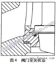 圖4為閥門全關(guān)狀態(tài),金屬密封與彈性密封同時(shí)作用,密封嚴(yán)密、可靠。