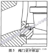 圖5為閥門全開狀態(tài),彈性軟密封環(huán)恢復(fù)彈性。