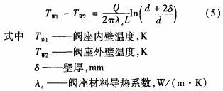 在實際工程應(yīng)用中,可將該超高溫閥座導(dǎo)熱體近似認為是圓筒壁,由傅里葉定律求得閥座壁面溫差。